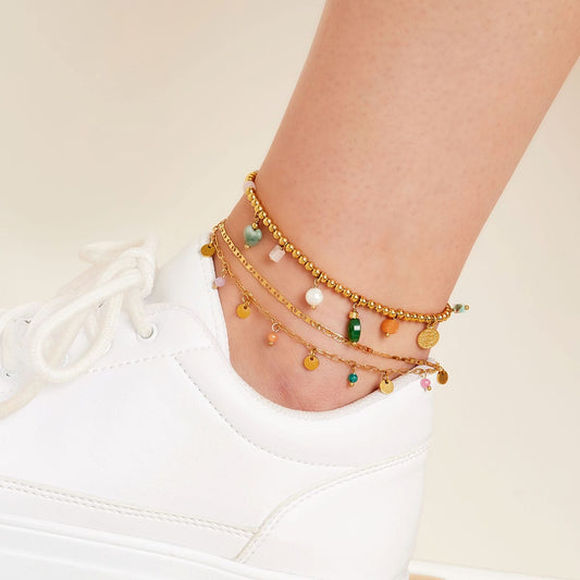 Enkelbandje dubbele ketting met bedels